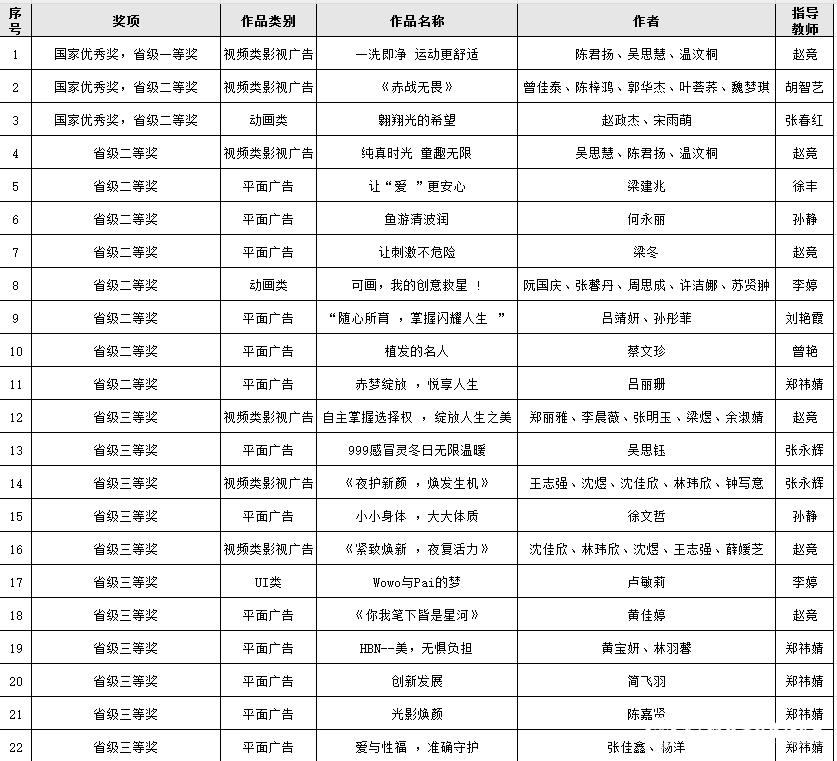 近年来,艺术设计学院高度重视实践教学,“以赛促学、以赛促教”,积极组织学生参与各类学科竞赛,取得了一系列优秀成果。 大广赛是艺术设计学院的“一院一赛”品牌赛事,作为全国性广告策划类A类学科竞赛,是提高学生实践能力和创新能力的优秀平台,此次获奖不仅凸显了学生在大型赛事中的良好竞争力,也充分展示了艺术设计学院在人才培养方面的丰硕成果。