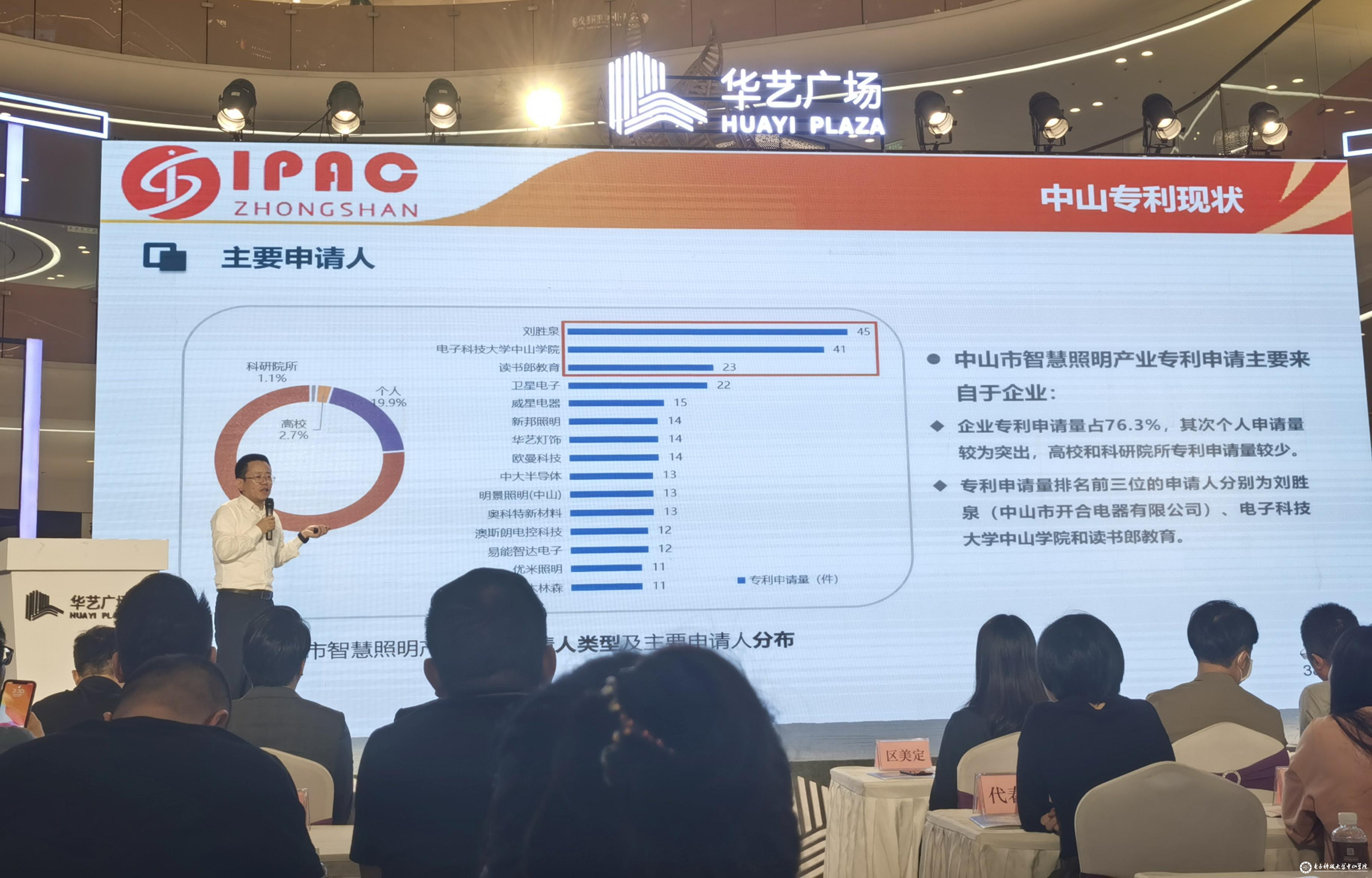 3月20日下午,校广东(中山)知识产权分析评议中心主任钟辉新在“2023年中国智慧照明产业发展论坛”作“中山市智慧照明产业专利分析评议报告”。报告以详实的数据以及丰富的图表深入剖析了全球、中国和中山智慧照明产业现状、关键技术、专利布局,全面总结了中山智慧照明产业的存在问题,针对性地提出了发展的五个方面及十一点具体建议和对策,报告获得现场嘉宾高度认可。